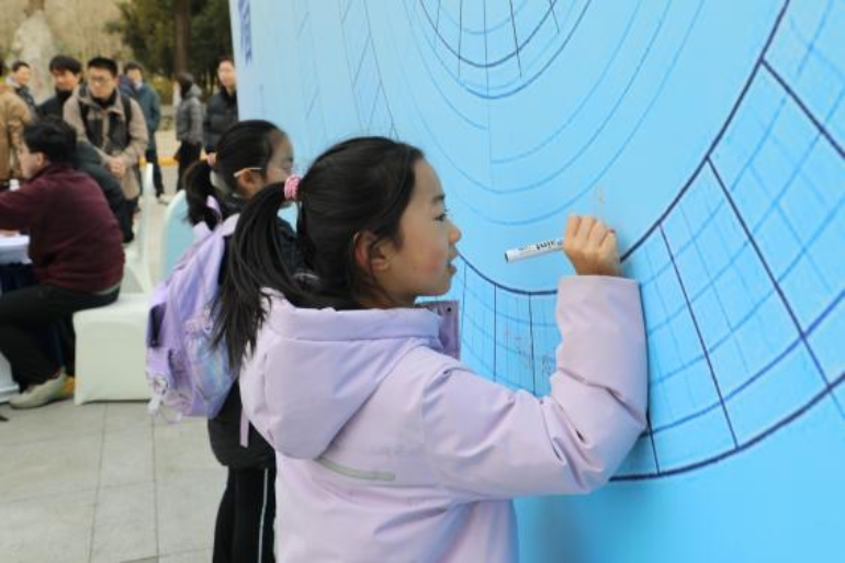 活动现场人头攒动,同学们手持“探险地图”穿梭于各个摊位。入口处的签名墙也成为一大亮点。大家用不同字体书写圆周率π、数学公式与定理,拼凑出一面充满创意的“π墙”,定格属于数学的独特印记。